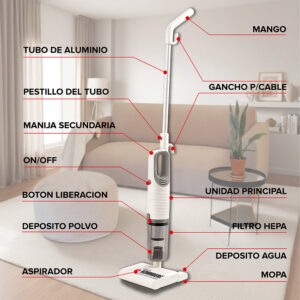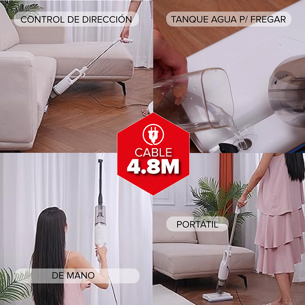 Haz tu limpieza diaria más rápida y efectiva con la innovadora aspiradora 2 en 1 que combina potencia y practicidad: aspira sólidos, líquidos y también funciona como mopa para dejar tus pisos relucientes.