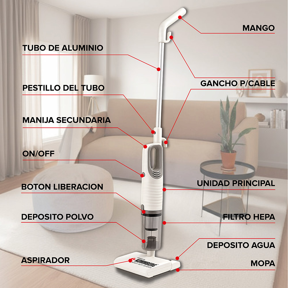 Aspiradora KOMMBERG 2 en 1 > Aspira y Trapea al Mismo Tiempo