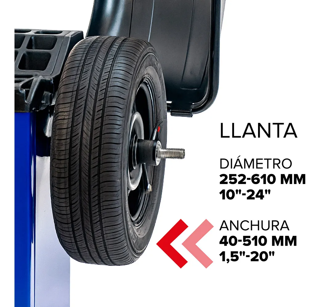 • Diámetro de la llanta 252-610 mm 10″-24″