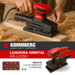 La Lijadora Orbital Kommberg KB-LO250 es la herramienta práctica y confiable para tus proyectos de bricolaje. Con 250W de potencia y una velocidad de 11.500 rpm, garantiza un lijado rápido y parejo en madera o metal.